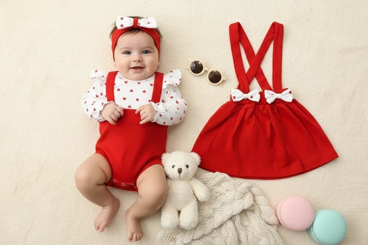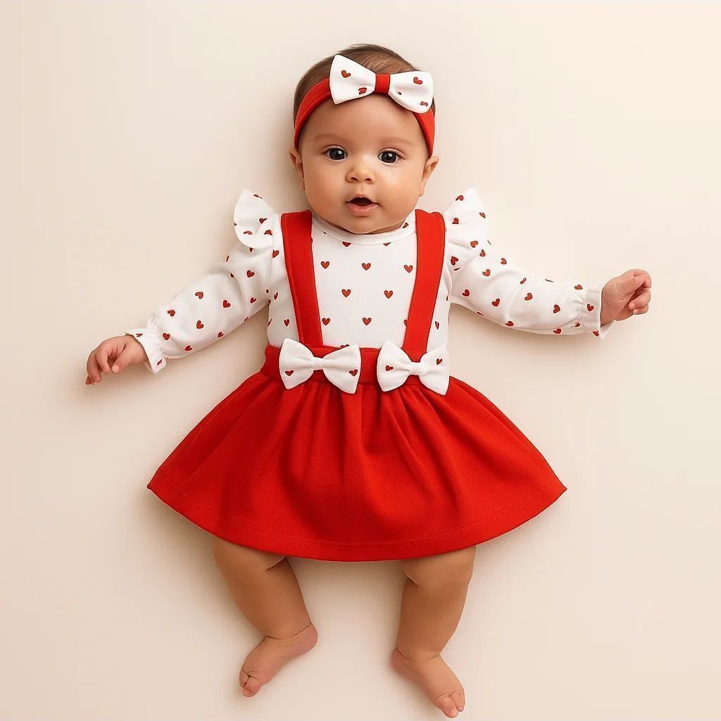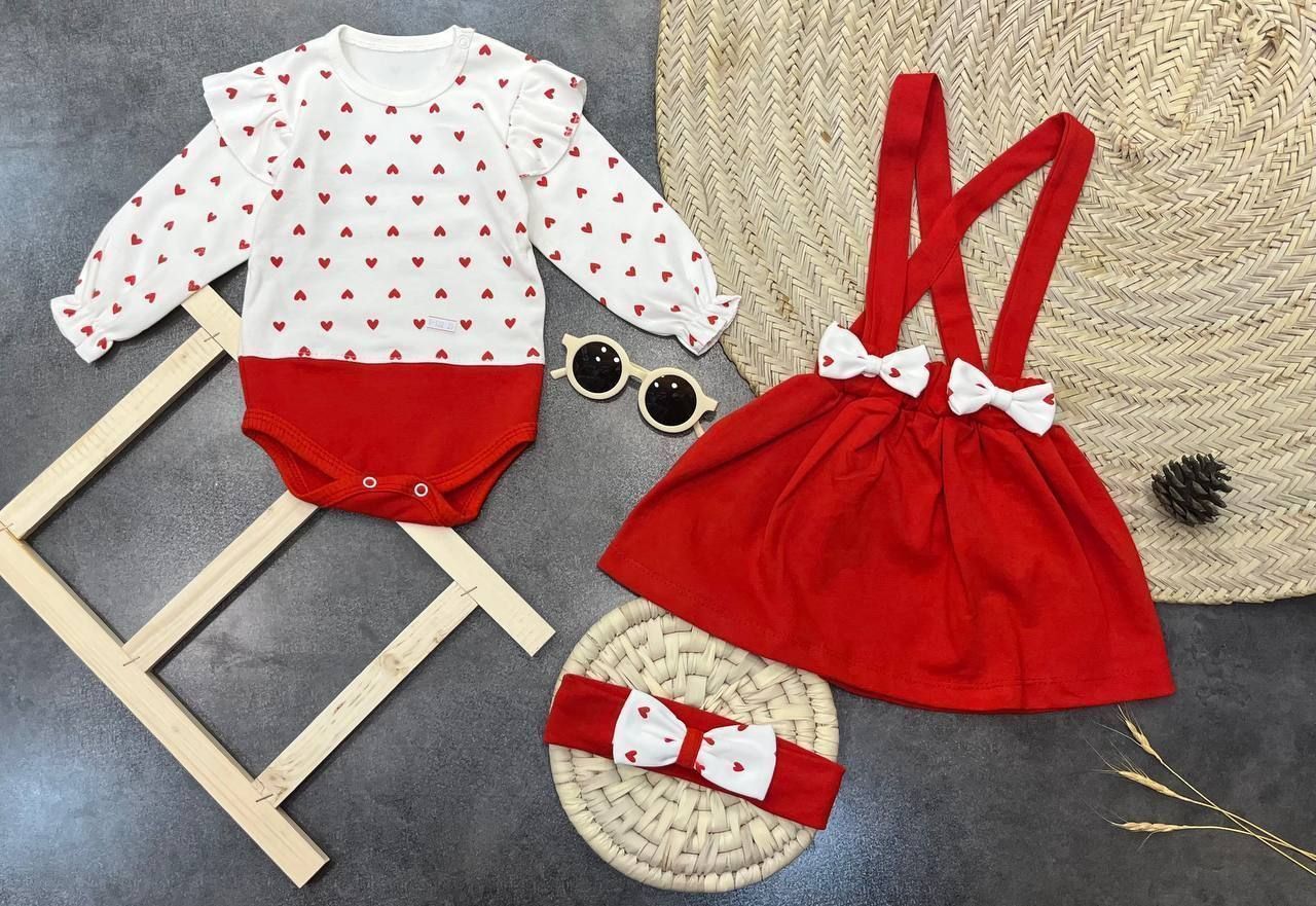 سه تیکه بادی دامن و تل قلب(نوزادی تا ۴ ماه)